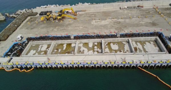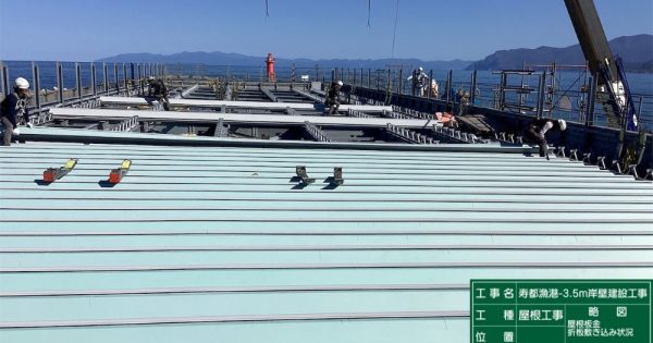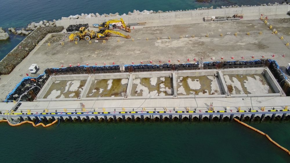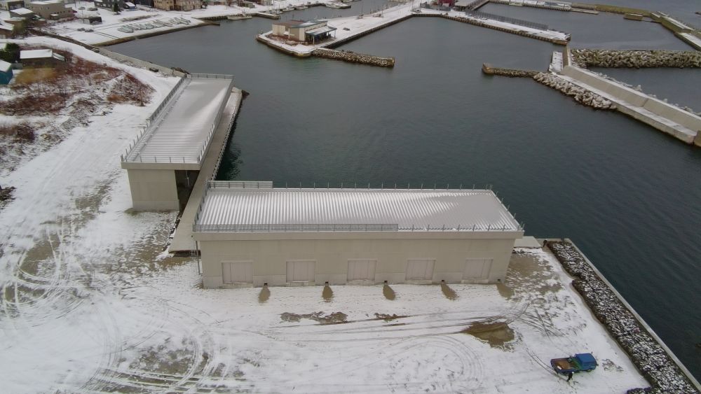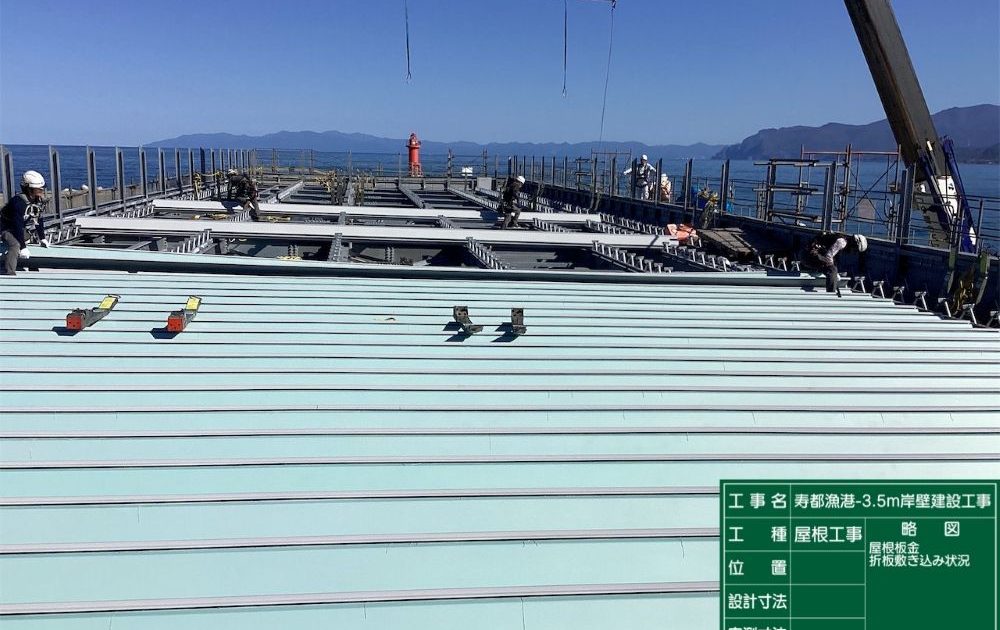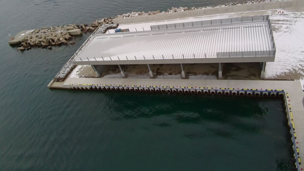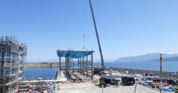 -3.5m岸壁 L=65.5m 構造物撤去工 一式 本体工 一式 上部工 L=65.9m 裏込・裏埋工 一式 舗装工 L=67.96m 付属工 L=60.00m 排水構造物工 L=47.40 屋根施設:鉄骨造平屋建て 新築1棟 延べ面積560m2 |
