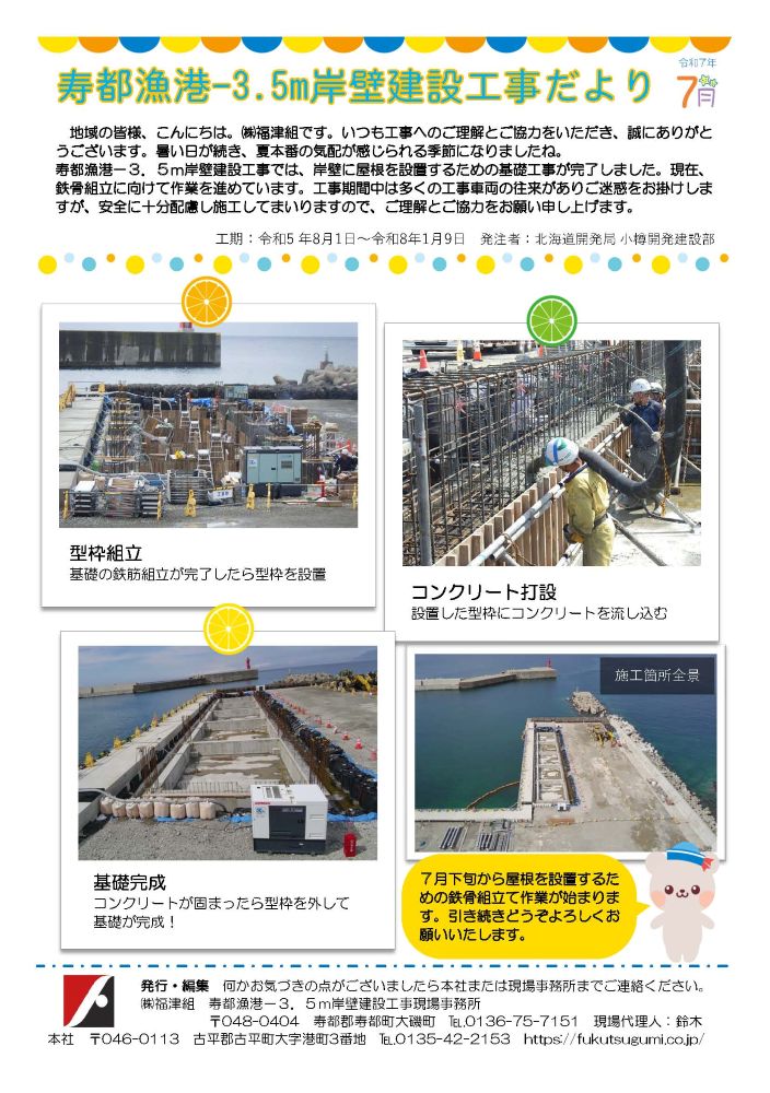 寿都漁港 -3.5m岸壁建設工事